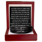 Composed of stainless steel and vegan leather, this handsome bracelet features a strong magnetic clasp, making this heartfelt gift last a lifetime! Your piece is packaged in a complimentary soft touch box for easy gifting. Elevate your presentation by upgrading to the mahogany style luxury box, which features a brilliant LED spotlight.