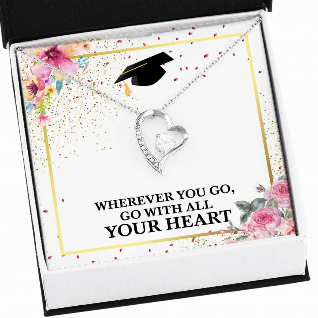 Celebrate the achievements and bright future of your graduate with our exquisite "Go With All Your Heart" Necklace. This elegant piece of jewelry is designed to inspire and empower, making it the perfect gift for anyone stepping into a new chapter of their life.