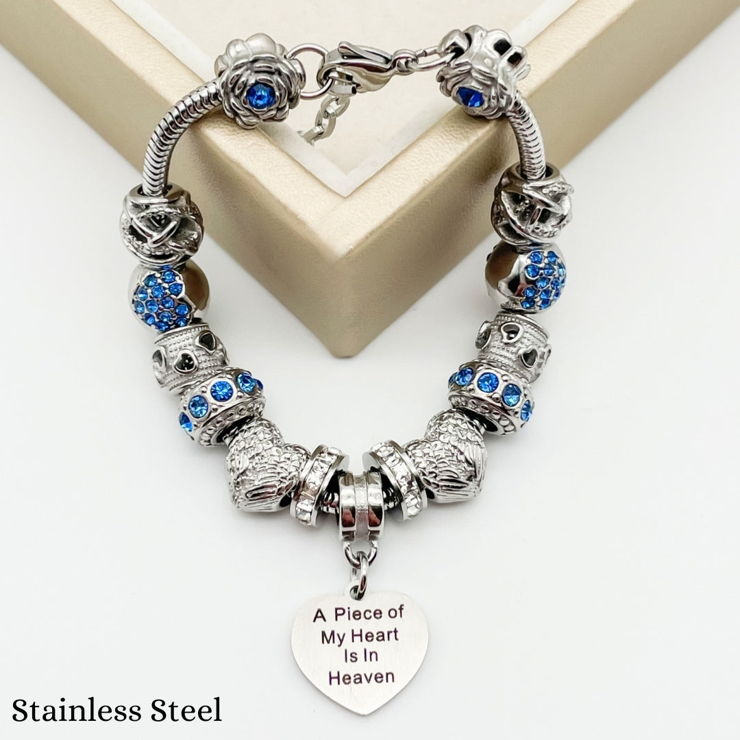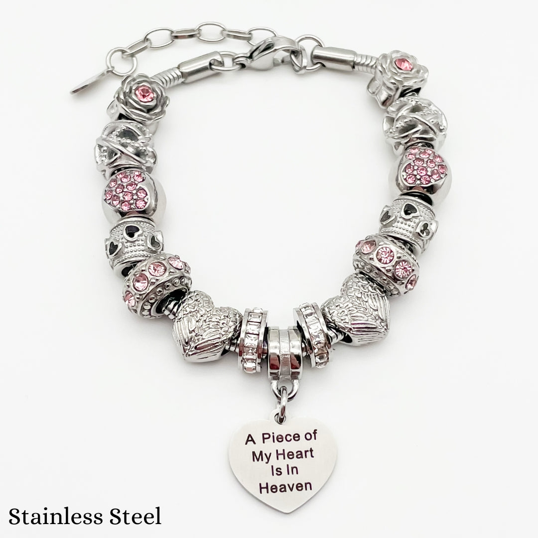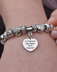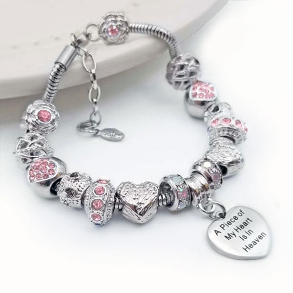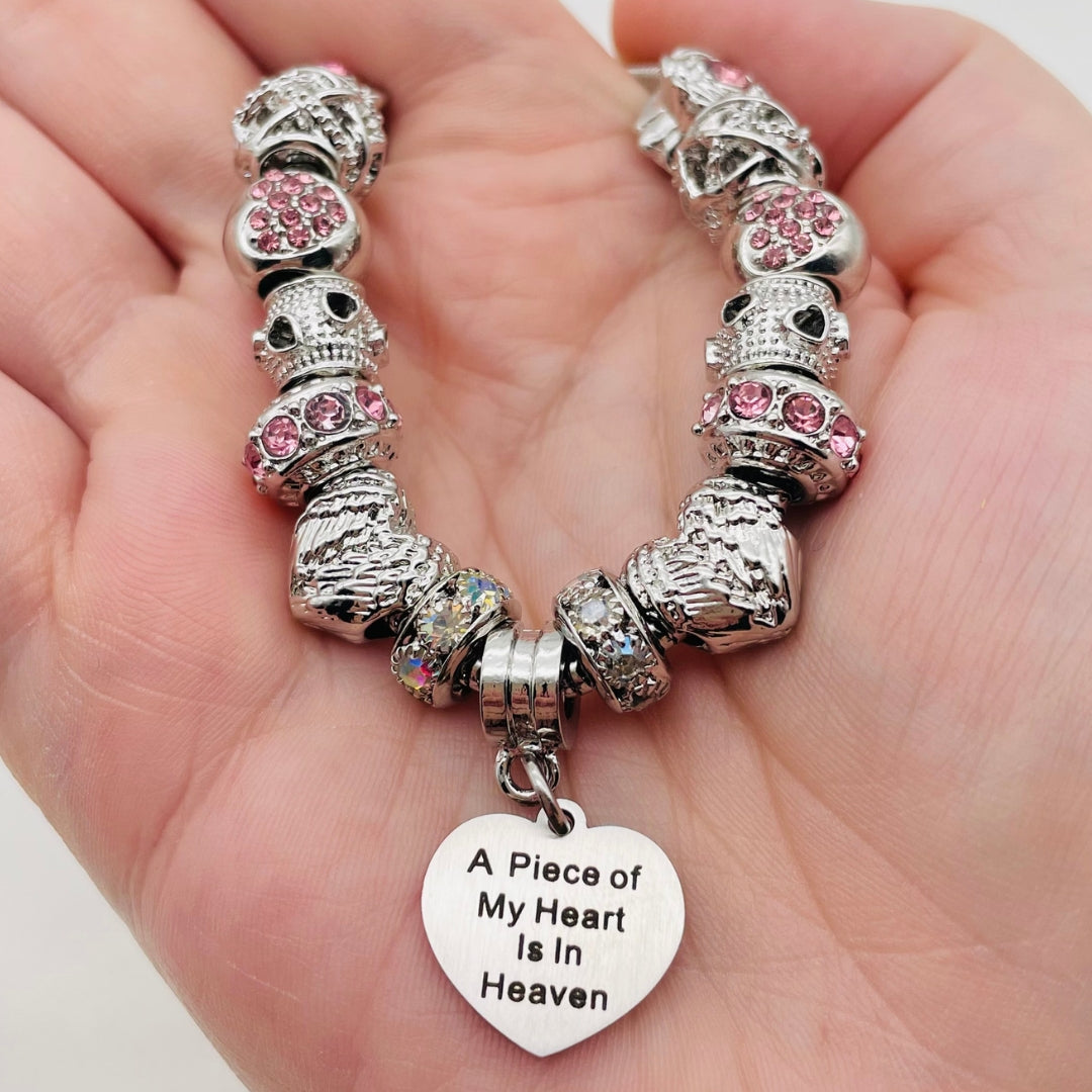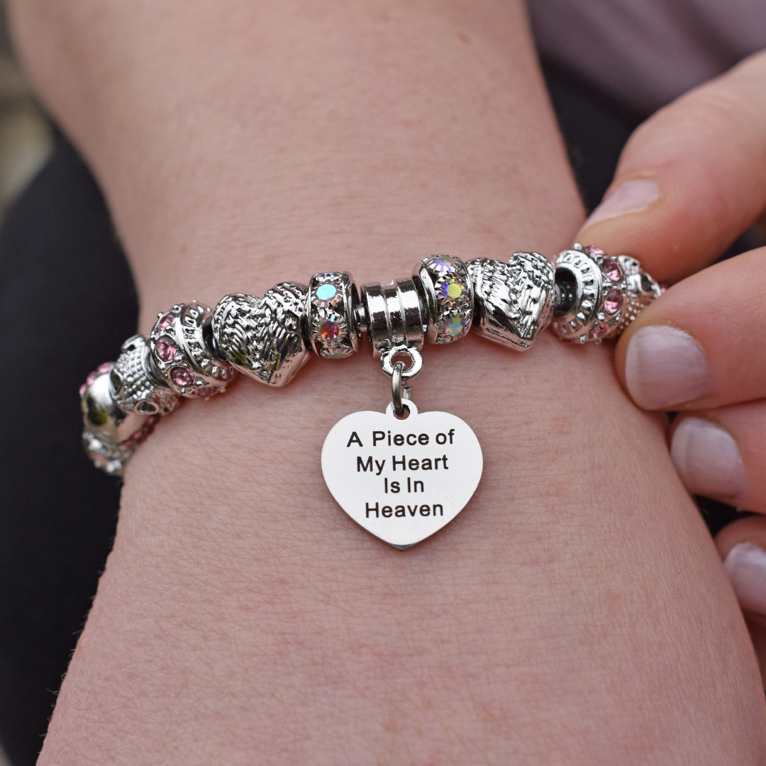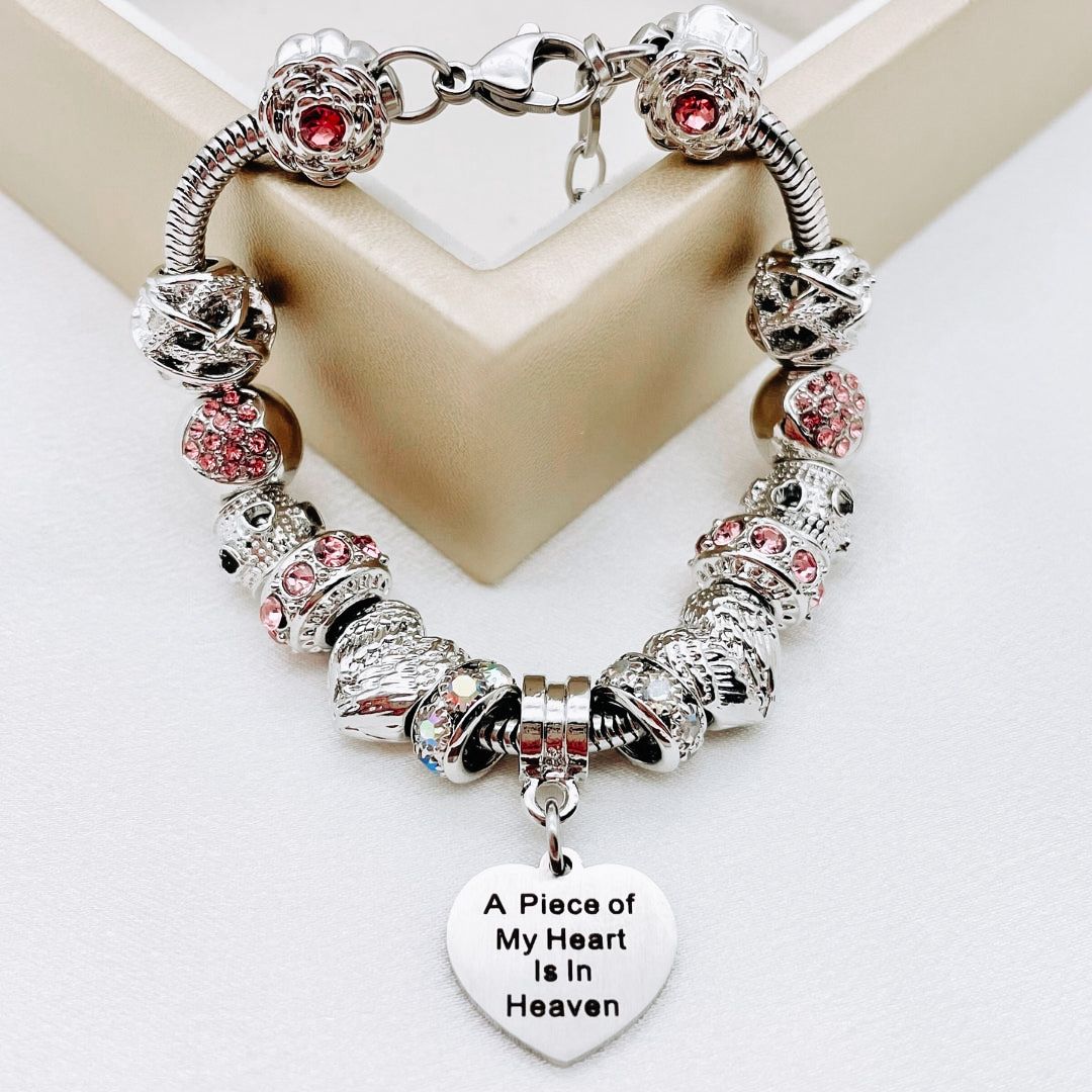 Embrace the memory of your loved ones with our Piece of My Heart Bracelet, a timeless and elegant design created to provide comfort and remembrance. This exquisite bracelet is more than just jewelry—it's a heartfelt keepsake that holds a special place for those who are no longer with us but forever in our hearts. Each charm symbolizes the connection and celebration of life.