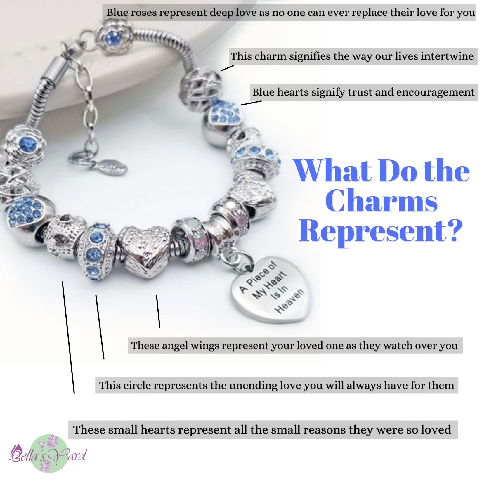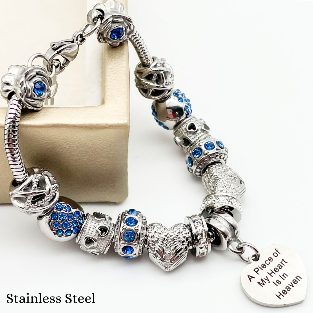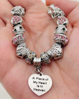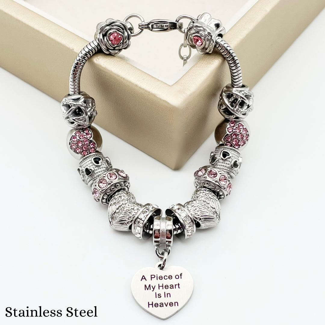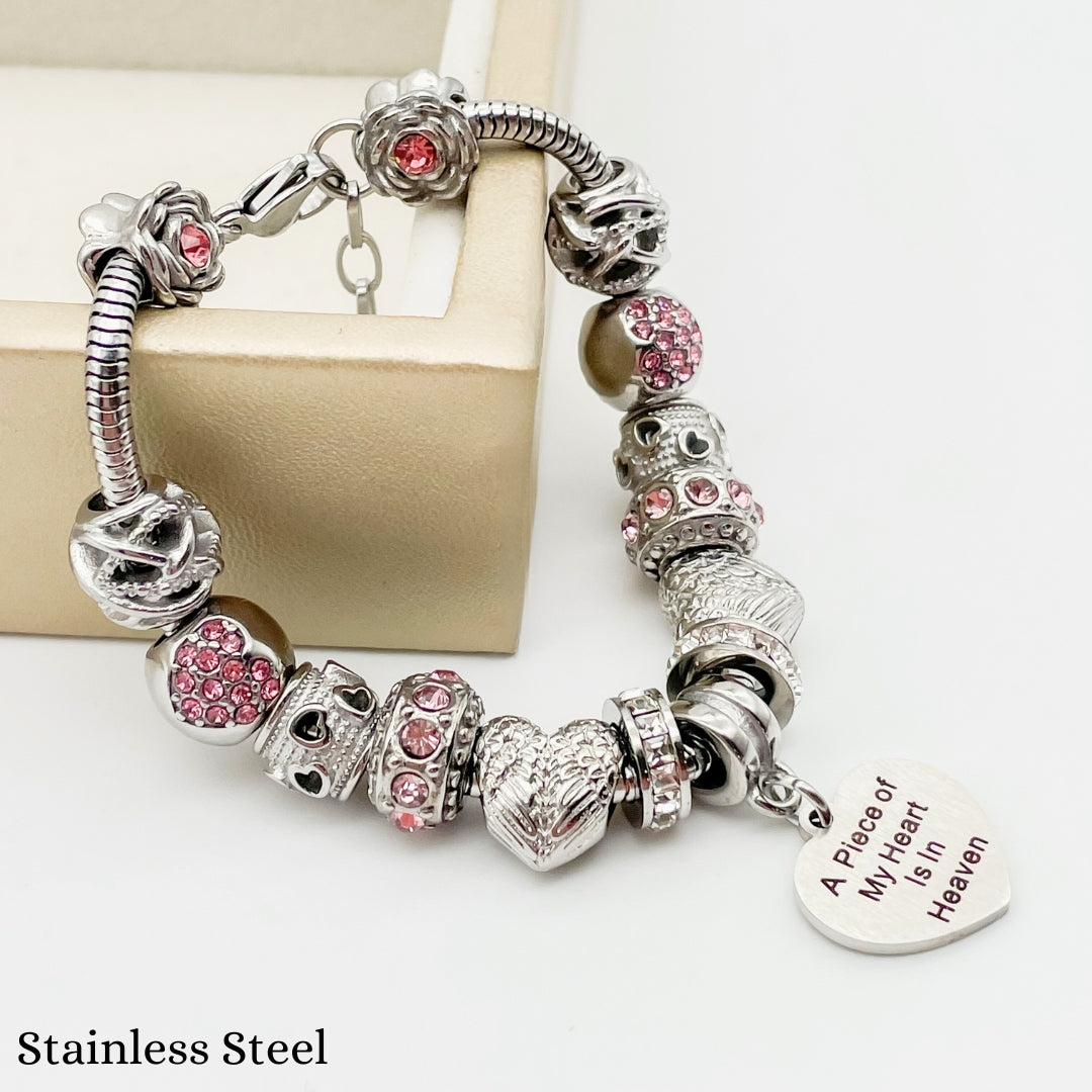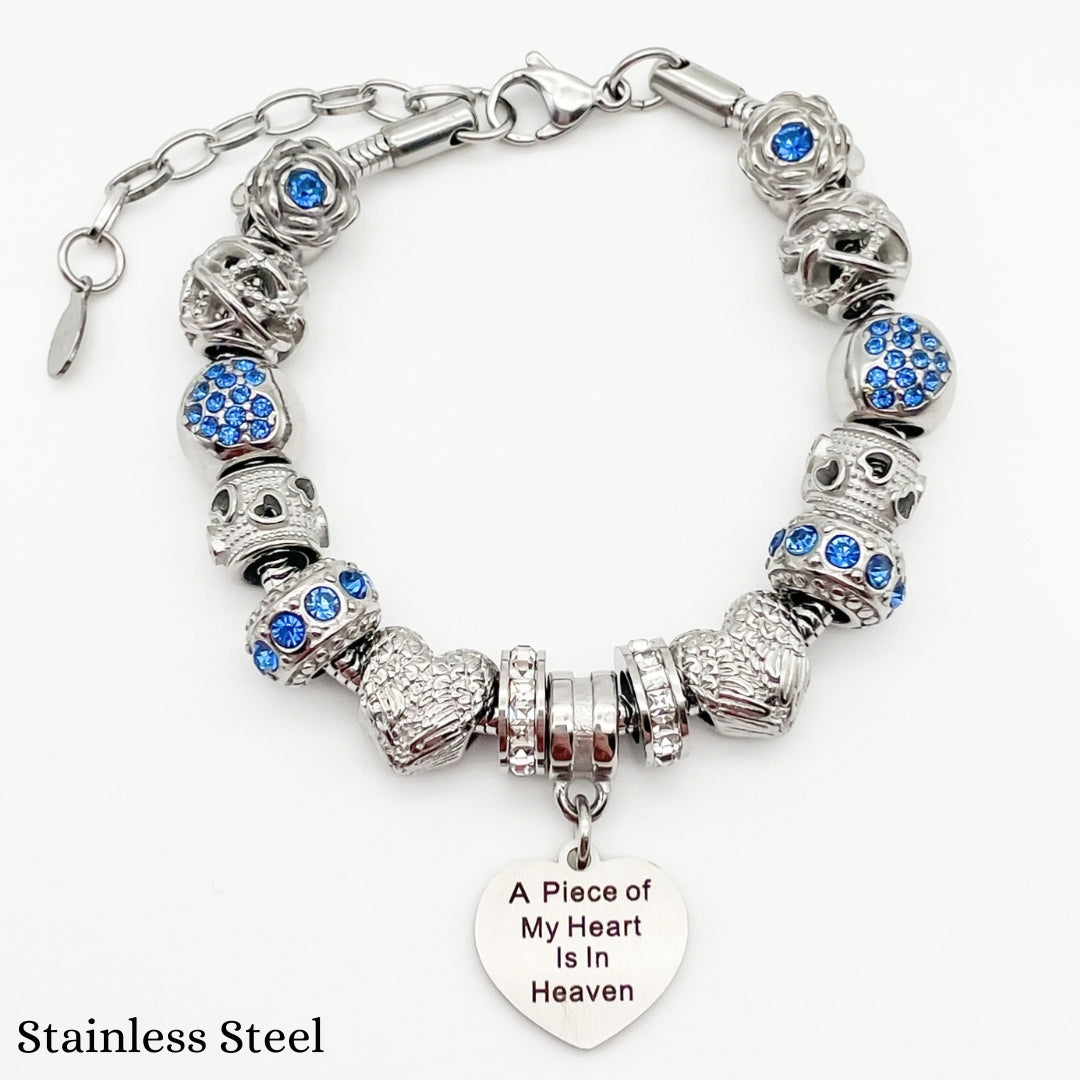 Embrace the memory of your loved ones with our Piece of My Heart Bracelet, a timeless and elegant design created to provide comfort and remembrance. This exquisite bracelet is more than just jewelry—it's a heartfelt keepsake that holds a special place for those who are no longer with us but forever in our hearts. Each charm symbolizes the connection and celebration of life.