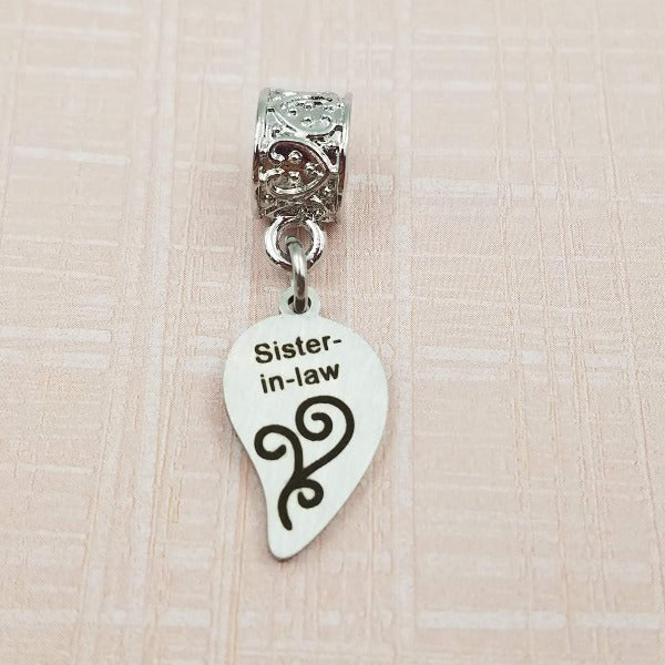 "Sister-in-law" Right Half Heart Clip-on Charm